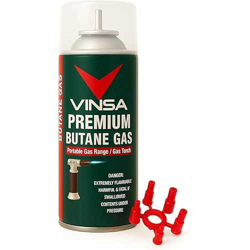39512 reviews for Vinsa Butane Gas Refill Can 225g | 550ml, Universal Lighter Refill Canister with Long SS Nozzle & Adapter | Butane Fuel for Gas Lighters, Kitchen Lighter, Candle & Metal Refillable Lighters