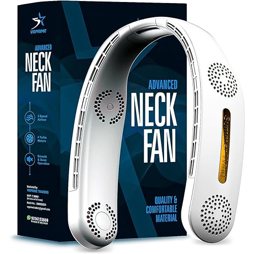 4458 reviews for VR PRIME Portable Neck Fan Rechargeable | Neck Fan for Kitchen Women | Better then Desk Table Hand Fan | 4 Turbo Motor 3 Speed Low Noise Motors (White, 2400mAh)