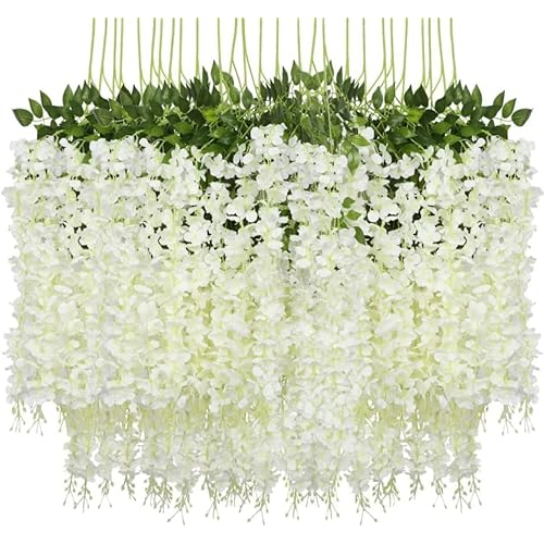 375952 reviews for VRB Dec Pack of 6 (43.2Ft) Artificial Wisteria Vine| Ratta Fake Wisteria Hanging | Garland Silk Long Hanging Bush Flowers String for Home Party Wedding Decor (White, 6)