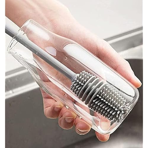 - [ Grime Free And Scrath Safe ] :- The soft, flexible silicone bristles of our water bottle cleaning brush are tough on gunk, yet gentle enough to leave your favorite vase, glass water bottle, pitcher, blender, and glassware clean and scratch-free.
