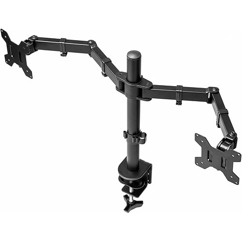 HIGH-QUALITY BUILT: This sturdy dual monitor stand is engineered using highly durable steel. It comes with a heavy-duty adjustable C clamp to help you to position your screen at a more ergonomic viewing angle. The durable built is can easily withstan… read more