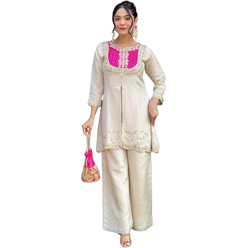 5052 reviews for Wedding Outfit For Women Embroidered Shrara Set For Women Designer Silk Kurta With Sharara Pants Festive Ethnic Wear Traditional Outfit For Celebrations Functions Ceremonies And Gatherings