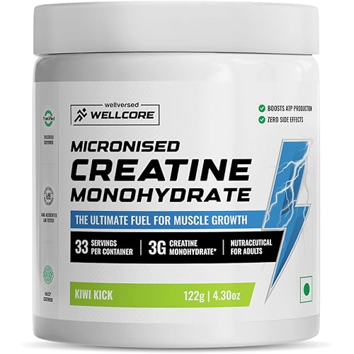 Wellcore – Pure Micronised Creatine Monohydrate Powder | Kiwi Kick | (122g, 33 servings) | Lab Tested For Fast Absorption & Recovery