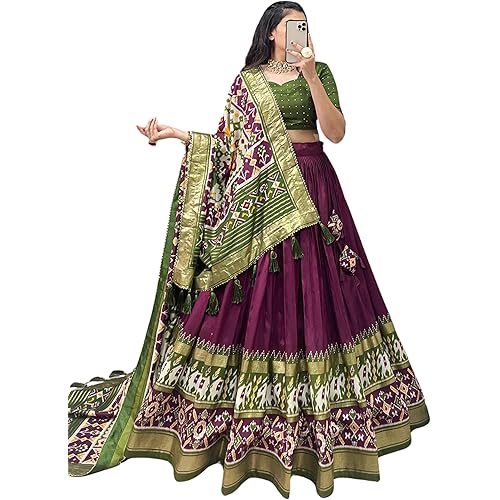 2 reviews for WELLY Women Tussar Silk With Patola Print And Foil Work Lehenga choli