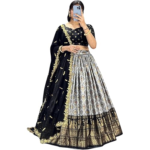 1 review for WELLY Women Tussar Silk With Patola Print And Foil Work Lehenga choli (BLACK1)
