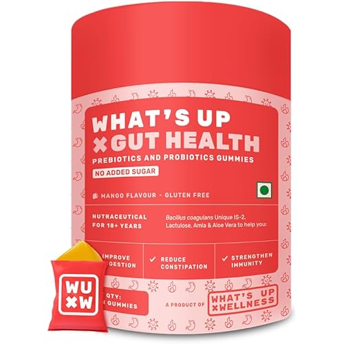 What’s Up Gut Health Supplements Gummies | Prebiotic & Probiotic Gummies for Digestion, Constipation & Immunity | Bloating, Acidity & Gas Relief | Clinically Proven Strain | 30 Days Pack (Pack Of 1)
