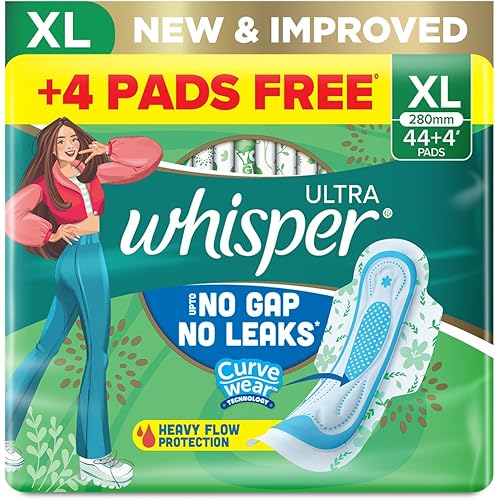 4251469 reviews for Whisper Ultra Upto No Gap No Leaks Sanitary Pads, 48 XL Pads, For Heavy Flow Protection, With CURVEWEAR™ Technology, Cotton Like Softness, Disposable Wrapper, Locks Odour & Wetness