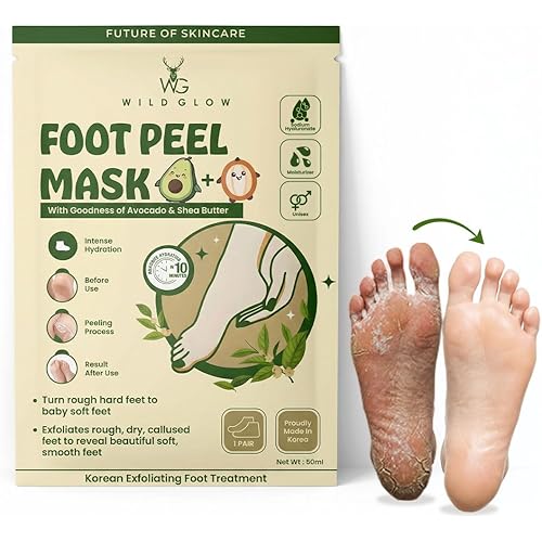 47527 reviews for WildGlow Korean Peeling Foot Mask for Dry Cracked Feet | Dead Skin and Heavy Callus Removal | Intense Hydration with Avocado and Shea Butter to get Baby Soft Skin within 72 hours | 50ml