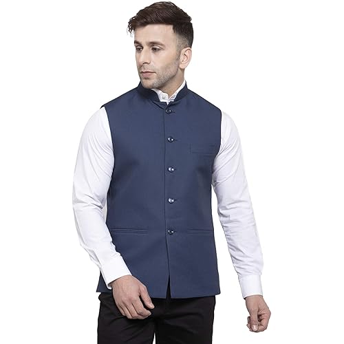 WINTAGE Men’s Poly Cotton Festive and Casual Nehru Jacket Vest Waistcoat
