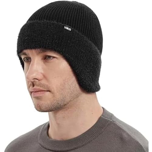 Winter Cap for Men Woolen Winter Fleece Line Beanie with Earflap for Men Women, Double Layers (Soft Warm Velvet Inside) Outdoor, Indoor Warm Thermal Knitted Hat Stocking Caps