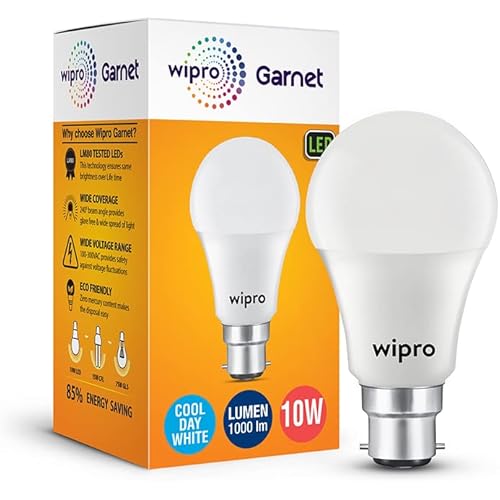 25331 reviews for wipro Garnet 10W LED Bulb for Home & Office |Cool Day White (6500K) | B22 Base|220 degree Light coverage |4Kv Surge Protection |400V High Voltage Protection |Energy Efficient | Pack of 1