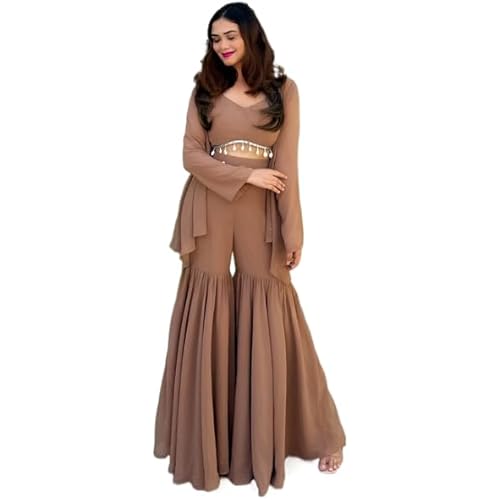 Fabric: Georgette || Bottom Style: Sharara Style: Women’s Ethnic Crop Top And Sharara Suit Set with Shrug Wash Care: Hand Wash, Cold Water Wash Only Best suitable for all occasion like wedding, ceremonial, party, birthday, festival. Its Ready to Wear… read more