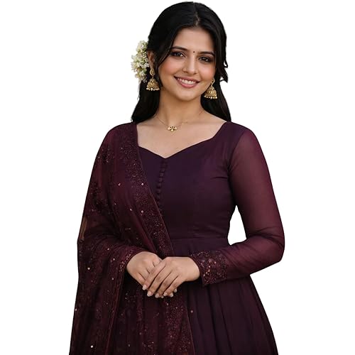 Women Suit Anarkali Set with Dupatta | Long Sleeve Embellished for Wedding Festive | Ethnic Anarkali Women Suit