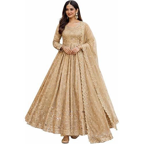 Women’s Embroidered Anarkali Kurta With Pant & Dupatta, Heavy Silk Long Flared Anarkali Kurta Set For Wedding, Festival