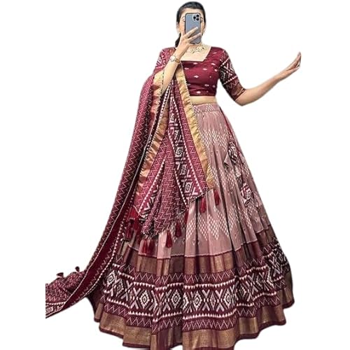 Women’s Ethnic Silk Lehenga Choli with Unstitched Blouse, for Weddings and Festivals