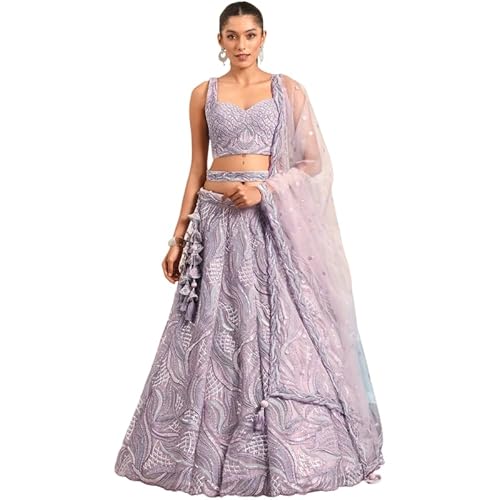 Women’s Lavender Net Sequins and Zarkan embroidery Semi-Stitched Lehenga choli & Dupatta
