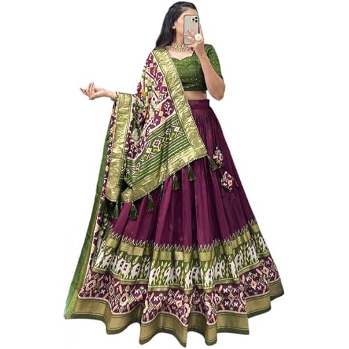 10 reviews for Women’s Lehenga Choli | Tussar Silk With Patola Print with Foil Work With Solid And Unstitched Blouse Lehenga Choli With Dupatta