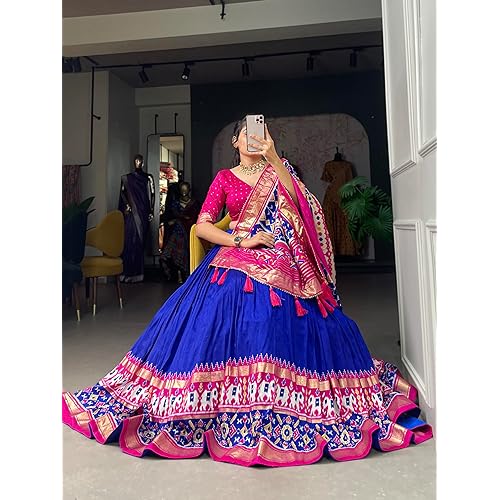 26 reviews for Women’s Navratri Collection 2023 Dolla Silk Lehenga Choli Patola Print with Foil Work With Blouse Solid (BLUE)