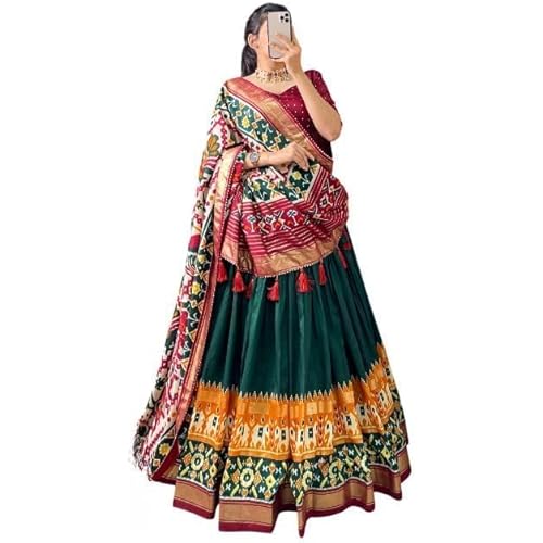 24518 reviews for Women’s Trending Designeer Tussar Silk Lehenga Choli Print with Foil Work With Unstitched Blouse Patola Print Adorned with Foil Work For Navrati || Wedding