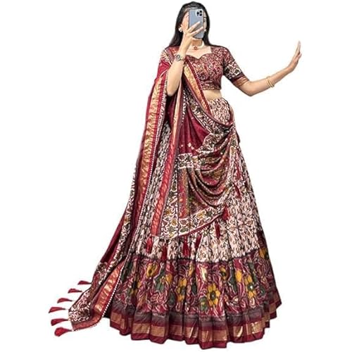 37538 reviews for Women’s Trending Designeer Tussar Silk Lehenga Choli Print with Foil Work With Unstitched Blouse Patola Print Adorned with Foil Work For Navrati || Wedding