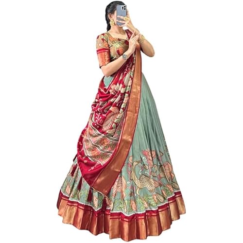 Women’s Trending Designeer Tussar Silk Lehenga Choli Print with Foil Work With Unstitched Blouse Patola Print Adorned with Foil Work For Navrati || Wedding