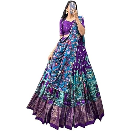 Women’s Trending Designeer Tussar Silk Lehenga Choli Print with Foil Work With Unstitched Blouse Patola Print Adorned with Foil Work For Navrati || Wedding
