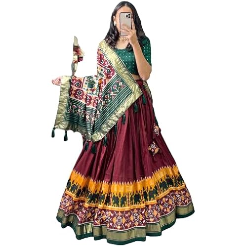 - Lehenga Work : Patola Print With foil work, Blouse work : foil Printed, Dupatta work : Patola Print with Gotta Patti Lace Border also comes with tassels