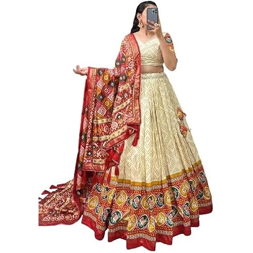 Women’s Tussar Silk Lehenga Choli Patola Print with Foil Work With Blouse Solid
