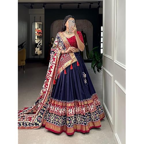 2 reviews for Women,s Tussar Silk With Leheriya And Foil Print Lehenga choli Set (NAVY BLUE)