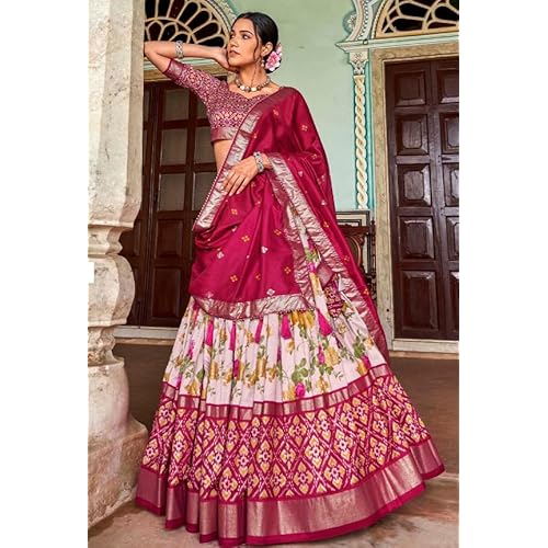 Women’s Tussar Silk With Leheriya And Foil Printt New Lehenga choli Set (PINK)