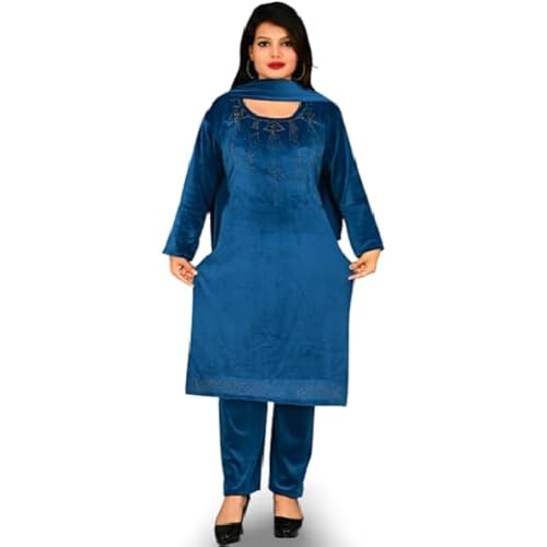 Women’s Velvet Winter Salwar Suit Set, Top, Bottom & Dupatta, 3 Pieces