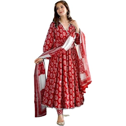 Women’s Viscose Rayon Floral Printed Anarkali Kurta Pant and Dupatta Set