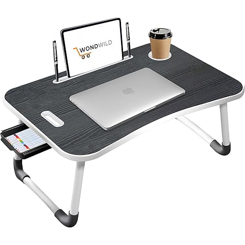 28 reviews for WONDWILD Premium Foldable Wooden Mini Laptop Table for Bed, Study Table with Drawer, Tablet/Mobile/Cup Holder for Kids & Adults (C-Bidding *Black*)