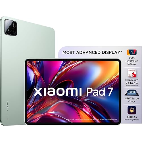 Xiaomi Pad 7 |Qualcomm Snapdragon 7+ Gen 3 |28.35cm(11.16″) Display |12GB, 256GB |3.2K CrystalRes Display |HyperOS 2 |68 Billion+ Colours |Dolby Vision Atmos |Quad Speakers |Wi-Fi 6e |Sage Green