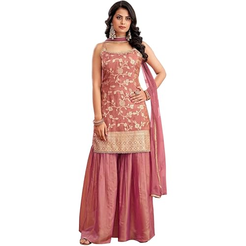 4656 reviews for Xomantic Fashion Womens Purple Color Banarasi Silk Kurta Sharara Set