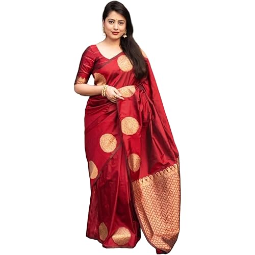 Yashika Women’s Banarasi Kanjivaram Cotton Silk Woven Saree with Unstitched Blouse Material