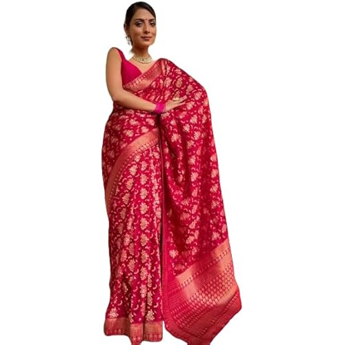 Yashika Women’s Banarasi Kanjivaram Jacquard Art Silk Saree – Exquisite Ethnic Attire for Indian Festivities – Unstitched Blouse Included – Perfect for Weddings & All Celebrations