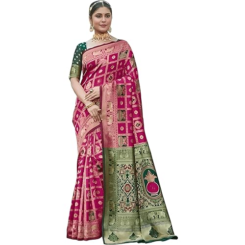 Yashika Women’s Banarasi Kanjivaram Silk Woven Saree | Animal Printed Patola Silk Saree for Women