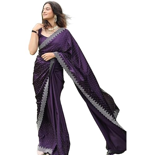 - Elegant Design: This saree features a stunning shade of purple with a smooth satin moss finish, offering a glossy, luxurious appearance that enhances your style.
