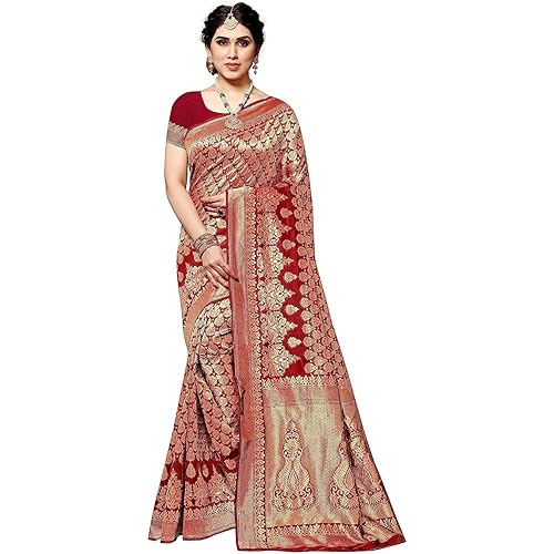 - By YASHIKA Women’s Banarasi Kanjivaram Red Color Art Silk Saree with Blouse Material on Amazon