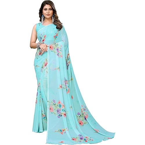 Yashika Women’s Trendy Printed Georgette Purple Color Saree with Blouse Material