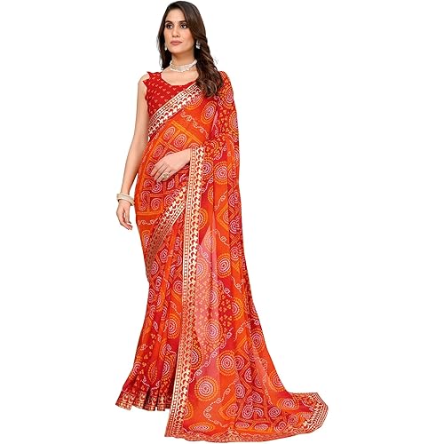 Yashika Women’s Woven Latest Georgette Saree with Lace and Blouse Material