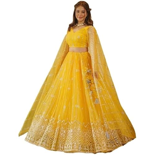 Yeoja Creation Women Heavy Net Semi-Stiched Embrodary Lehenga Choli with Dupatta