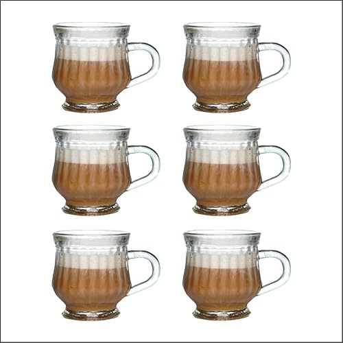 Yera 120ml Glass Tea Cup with Exquisite Design, Perfect for Regular Use and Serving Hot Tea – Glass Cup with Design, Set of 6