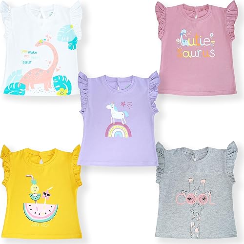 YUV Baby Girls’ 100% Cotton Printed T-Shirt (Pack of 5)