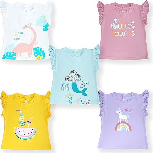 YUV Baby Girls’ 100% Cotton Printed T-Shirt (Pack of 5)
