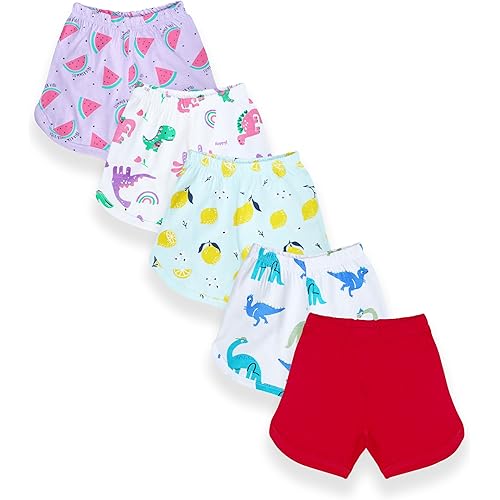 YUV Baby Girls Regular Fit Multicolor Cotton Shorts (Pack of 5) – 0 to 24 Months