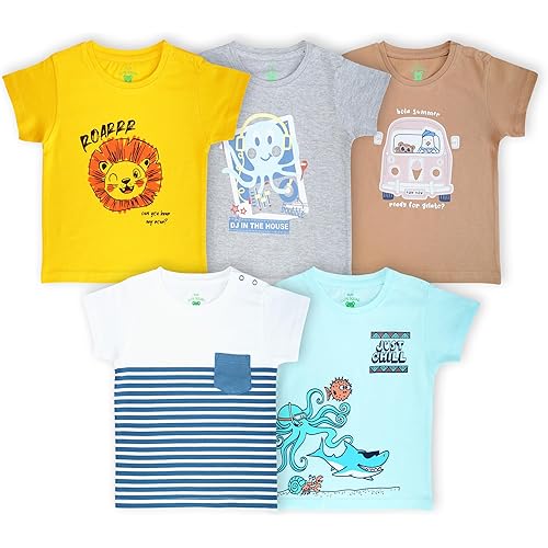 Premium Quality Material : These half sleeve babies tshirts are made of 100% combed cotton. Our babies shirts are designed with comfort & durability in mind & come with features like durable stitching, & moisture wicking fabrics to keep sweat at bay. This stylish and comfortable t shirts for babies will keep up with everyday activities and all the fun. An everyday basic, this super-soft t shirt for babies keeps kids comfy from week-to-weekend.
