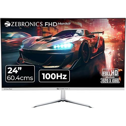 3752564 reviews for ZEBRONICS A24FHD LED Monitor, 24 inch (60.96cm), 250 nits, 100Hz, Slim Design, FHD, 1080p, Wall Mountable, HDMI, VGA, Ultra Slim Bezel, Metal stand, Built-in Speakers