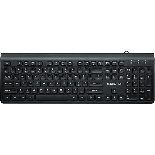 28 reviews for ZEBRONICS K51 Wired Keyboard with 105 Keys, 1.3m Cable, ₹ Key, USB Interface, 12 Integrated Multimedia Keys, Slim Design, Plug and Play (Black)